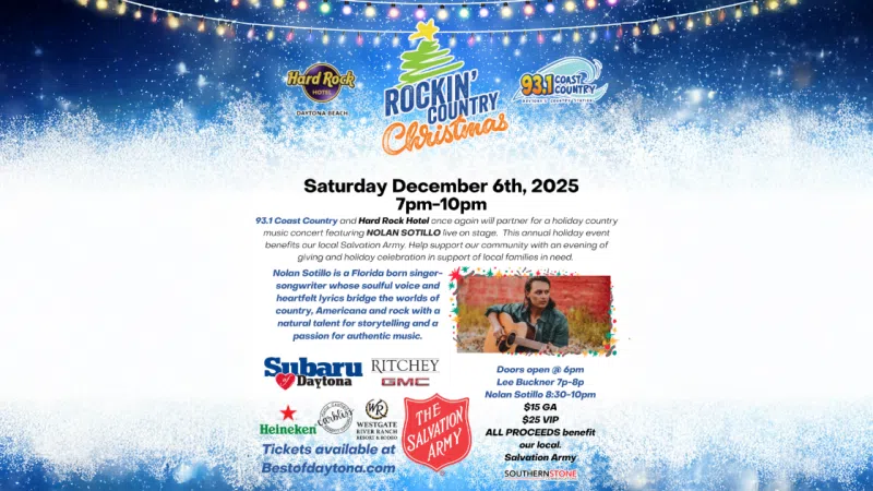 🎄 Rockin' Country Christmas at the Hard Rock Hotel Daytona Beach 🎸 Saturday, December 6th, 2025 | 6PM - 10PM -Get ready to kick off the holiday season with a boots-stompin' Christmas celebration like no other! 93.1 Coast Country and Hard Rock Hotel Daytona Beach are teaming up once again for a night filled with l...